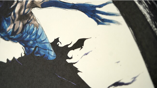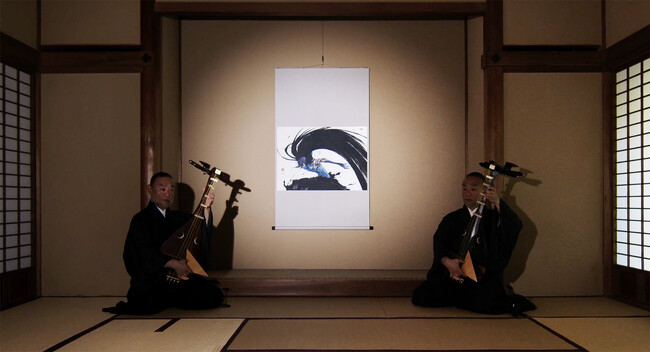 この作品のため、深大寺(東京・調布)の書院において、友吉鶴心による薩摩琵琶演奏とのコラボレーションを実現。あわせて全作品を深大寺・元三大師堂にて護摩祈祷を行っていただきました。
