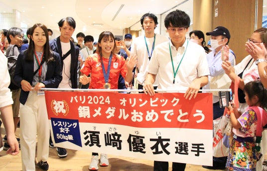須崎選手:パリオリンピックでは金メダルは獲得できませんでしたが、皆さんのご声援のおかげで立ち直ることができて、3位決定戦では気持ちを切り替えて挑み、銅メダルを獲得できました。日本の皆さんだけでなく、世界中の皆さんの温かいメッセージをいただいて、一つひとつそのメッセージを見て『最後まで頑張らなきゃ』って思って挑んだ3位決定戦だったので、皆さんと獲った銅メダルだと思います。