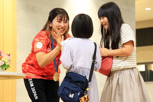 須崎選手:今日は本当に楽しみにしていました。直接皆さんの声も聞けて、皆さんの応援の熱量を感じられて、本当に嬉しかったですし、私の今後の活力になります。これからロサンゼルスオリンピック、そしてブリスベンオリンピックで金メダルを獲得できるように、より一層頑張っていきますので、ぜひ応援の程、よろしくお願いします。
