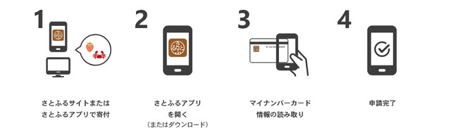 ※1 さとふるサイトから申し込みした寄付が対象。Yahoo!ショッピング版さとふるやPayPay版さとふる、LINEでふるさと納税での寄付はさとふるサイトとの連携により利用可能です。また、一部「さとふるアプリdeワンストップ申請」が利用できない自治体があります