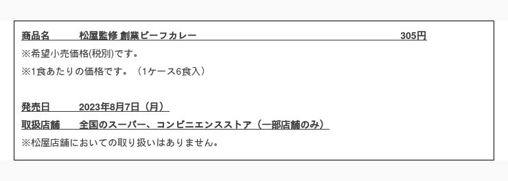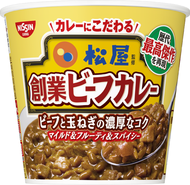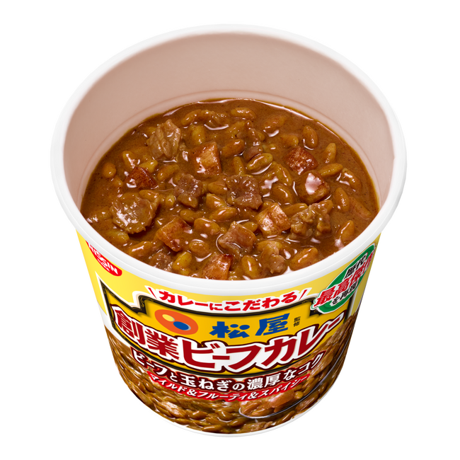 このたび松屋フーズ(本社:東京都武蔵野市、代表取締役社長:瓦葺一利)では、牛めし・カレー・定食・その他丼の「松屋」におきまして、日清食品株式会社の「日清のカップメシ」の「松屋監修 創業ビーフカレー」を、2023年8月7日(月)より全国にて販売開始いたします。
