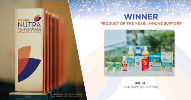 キリンホールディングス株式会社(社長 磯崎功典)が発売する、キリンの独自素材「プラズマ乳酸菌」を配合した「iMUSE」ブランドは、世界で食品・飲料・栄養業界向けのニュースレター、出版物、データソースを多数発行しているWilliam Reed Business Media社が主催する「Nutralngredients-Asia Awards」(https://nutraingredientsasia-awards.com/live/en/page/home) の「免疫サポート」部門において、2年連続で「プロダクト・オブ・ザ・イヤー」を受賞する快挙を成し遂げました。