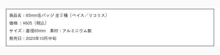 ペイス、リコリスの缶バッジ。