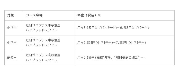 <「進研ゼミプラス」コース料金>
