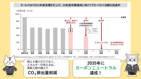 ジェイテクトグループは、「環境チャレンジ2050」を策定し「All for One Earth」をスローガンに、かけがえのない地球を次世代につなぐためのチャレンジをし続けています。カーボンニュートラル達成のためにScope1、2、3すべてにおいてCO2排出量削減をすすめ、自社の生産活動に関連するScope1、2においては2035年にカーボンニュートラル達成を目指しています。