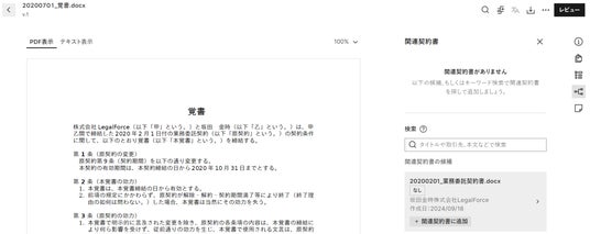 このたび、「LegalOn Cloud」にアップロードした契約書と関連する変更覚書や個別契約などを紐づけて管理することが可能となりました。複数の関連契約書を一元管理し、迅速に参照できることで、契約書管理の手間が軽減され、契約に関わる重要な変更事項等の見落としを防止することも可能になります。