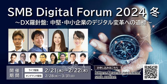 NECは、2/21(水)・2/22(木)にDXイベント『SMB Digital Forum 2024 冬 ~ DX羅針盤: 中堅・中小企業のデジタル変革への道標~』をオンライン開催いたします。