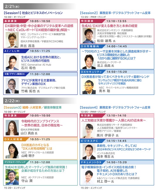 - 2/21(水) 10:05~NEC コンサルティングサービス事業部門長 井出昌浩による、中堅・中小企業のデジタル変革に役立つCxOレポート解説の講演