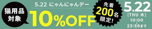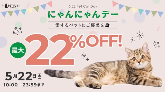 毎月恒例となった“PETFUN猫の日キャンペーン”を2025年5月22日(木)10時より開催いたします。今回は、猫用品全品が対象となる【先着限定クーポン】を2種類ご用意しました。