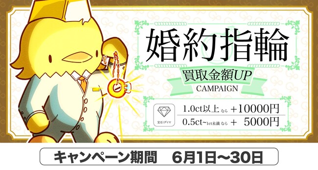 株式会社ドリームファクトリー(本社:大阪市北区 代表取締役:井上 馨)が展開するゴールドプラザでは貴金属・ブランド品・ 宝石を業界最高水準の安心買取りで累計56万人のお客様にご利用いただいております。店舗での買取をはじめLINE査定、宅配買取など、各種お客様に合わせたお買取り方法にも対応しており、また情勢の動きなども敏感に察知し情報を発信しております。そんなゴールドプラザでは、6月1日より婚約指輪買取強化キャンペーンを開催します。
