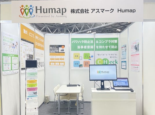 Humapのブース【南4階 小間番号:A18-12 】では、在席管理ツール「せきなび」や ハラスメント&コンプラ調査「CHeck」のアンケート画面などを実際にご覧いただけるデモ機をご用意してお待ちしております。