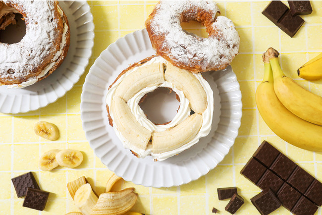 また、味わいだけではなくチョコチップのザクザク、「甘熟王」バナナのもっちりとした食感もお楽しみいただけるチョコリングに仕上げました。