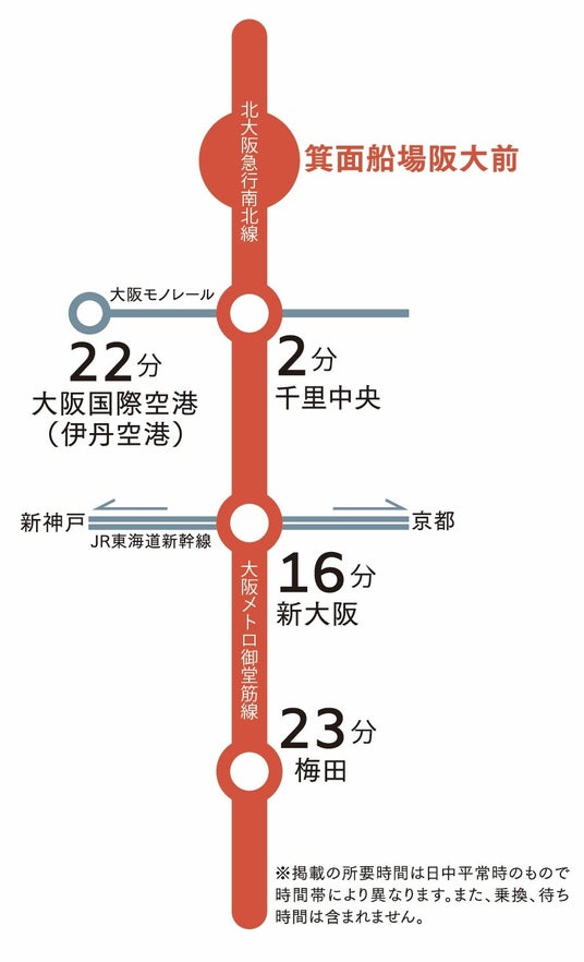 まちづくりが進行する箕面船場エリア内、優れた交通利便性