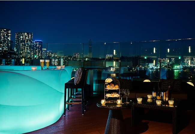 レインボーブリッジをはじめ東京湾岸夜景を一望するルーフトップテラスやダイニングで楽しむナイトタイム