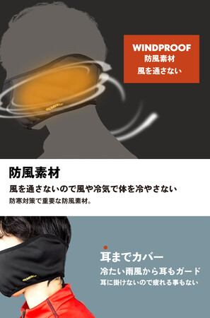 顔を出して野外活動をする際、冷たい雨風から顔をガードする防寒スポーツマスクです。