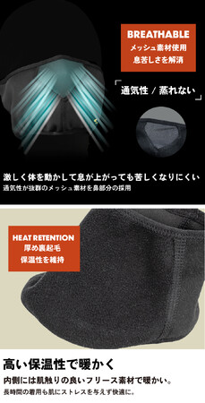 耳に掛けない・耳まで暖かい冬用スポーツマスクです。