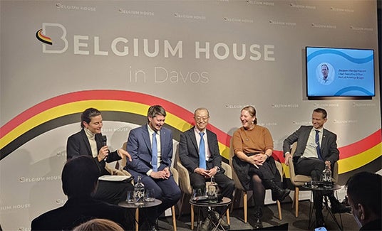 株式会社商船三井(社長:橋本 剛、本社:東京都港区、以下「当社」)は、2026年1月19日~23日にスイス・ダボスで開催された世界経済フォーラムの年次総会(通称「ダボス会議」)に日系海運会社で唯一参加しました。5度目の参加となる今年は、当社から社長の橋本を含め4名の役員が脱炭素化をはじめ様々な課題解決に向けた業界横断的な取り組みや世界情勢等について議論する主要セッションに多数出席し、世界各国から集まった多くの政財界のリーダー等と対話し意見交換を行いました。