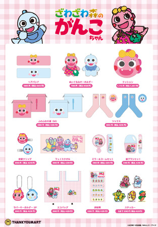 サンキューマートでの商品展開は今回が初めてとなり、「がんこちゃん」とその弟「がんぺーちゃん」を中心にデザインしたキュートな雑貨を全21アイテム展開します。