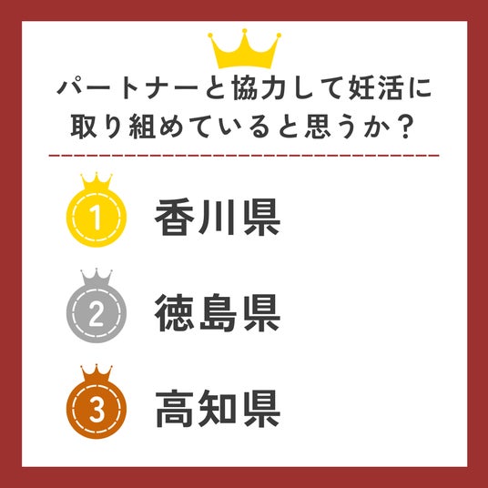 3. パートナーと協力して妊活に取り組めている都道府県ランキング。第1位は「香川県」