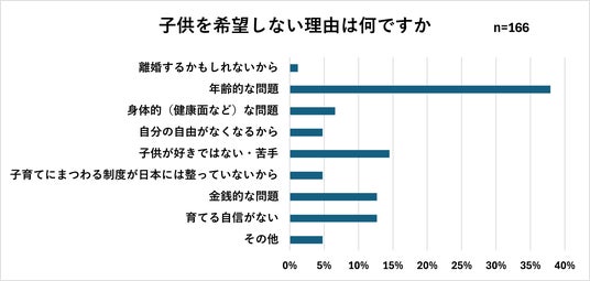 1. 子供を希望しない割合が半数以上。最も多い理由は「年齢的な問題」で晩婚化が影響か