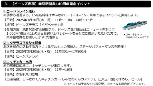 また、ロードトレインの運行やマルシェの開催、期間中のお買い物でJRE POINTが当たるキャンペーンを実施いたします。