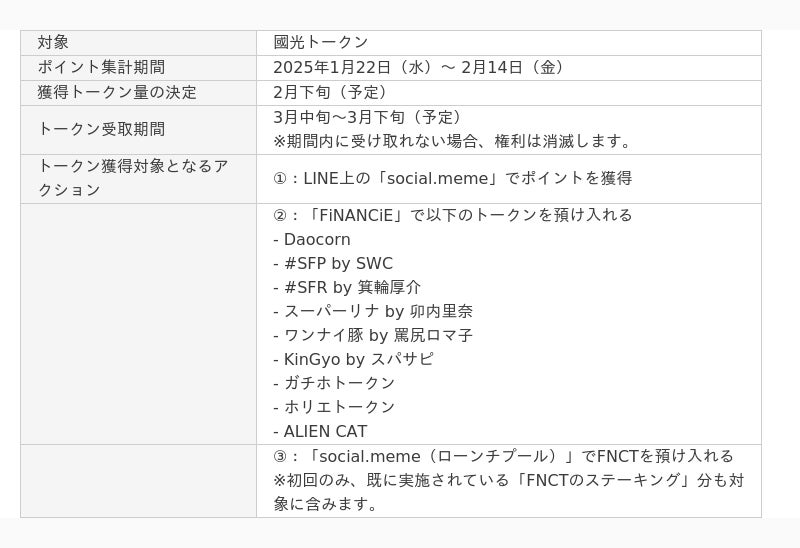 『social.meme』の記念すべき第一弾となるSeason1は、【國光トークン】を対象に実施いたします。