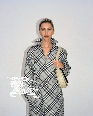 バーバリーチェックはバイアスにカットされ、サンドとライケンのカラーでアップデート。アイコニックな英国デザインへの自信に満ちた新しいアプローチです。このバーバリーチェックは、スイムウェア、先染めナイロンジャケットとコーディネートされたボトムス、コットンツイルのシャツドレス、コットンポプリンのテーラードシャツにプリントされています。