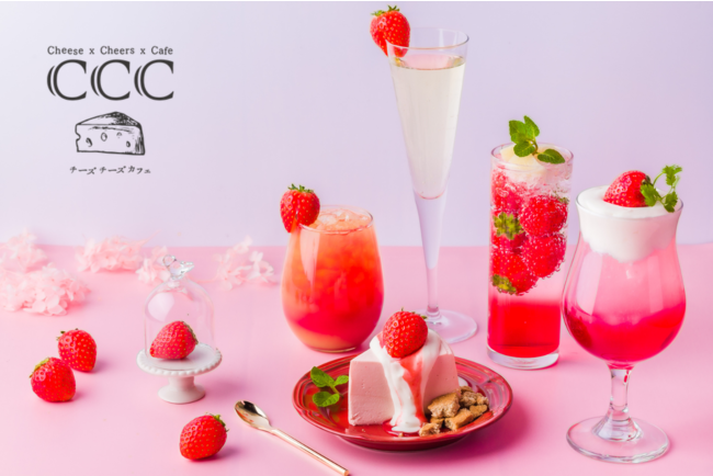 五感で楽しむチーズ料理専門店『CCC Cheese Cheers Café Kyoto(チーズチーズカフェ京都)』は、2022年2月に販売し好評だった「チーズ×いちご」シリーズを2022年6月1日(水)~6月15日(水)の期間限定で、再販売いたします。