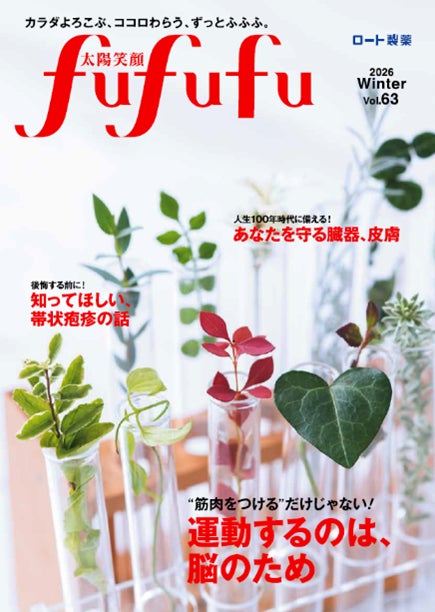 ロート製薬が生活者の毎日に寄り添い、健康・美容・ライフスタイルに関する情報をわかりやすく届ける生活者向けメディア。誌面(年4回発行)やウェブ・SNSを通じて、最新の知見やセルフケアのヒントをやさしい語り口で紹介しています。「太陽笑顔fufufu」が届ける小さなヒントが、明日の笑顔につながるよう願いを込めて、コンテンツを継続的に発信しています。