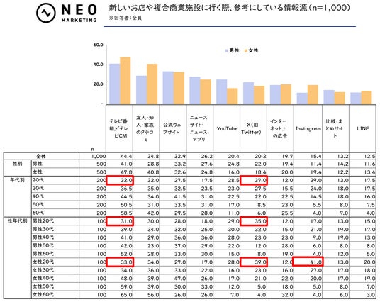 新しいお店や複合商業施設に行く際に、参考にしている情報源をお聞きしました。