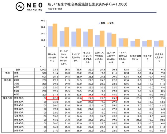■新しいお店や複合商業施設を選ぶ決め手(n= 1,000)