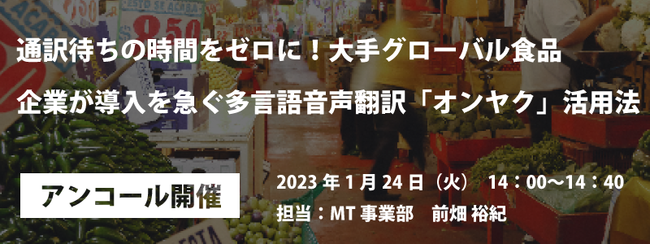 そこで本ウェビナーでは、Web会議/商談の発言内容を瞬時に翻訳し、文字起こしする音声翻訳ツール「オンヤク」の実演と活用事例をお届けします。食品大手の企業が頻繁におこなう多言語会議の通訳代わりに使え、また議事録/レポート作成の補助ツールとしても活躍中のツールです。