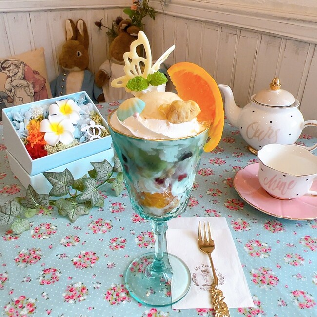 ペットの似顔絵フラワーやキャラクターフラワーを制作するネットショップ「動物のお花屋さんマイペリドット」を運営する株式会社岡田商会(所在地:兵庫県西宮市、店長:小原冬萌)はこのたび、兵庫・西宮のフラワーカフェ「マイペリドットカフェ」にて、不思議の国のアリスをイメージした新メニューの販売を開始いたしました。
