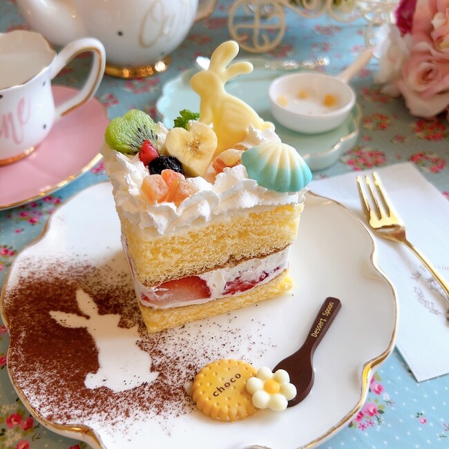 うさぎやお花、リボン、スプーンといった可愛いモチーフのチョコレートや、色とりどりの宝石のようなドライフルーツを、ふんわりと軽い食感のショートケーキに自分でデコレーションして自分だけのオリジナルケーキづくりが楽しめる、宝石箱をイメージしたスイーツです。