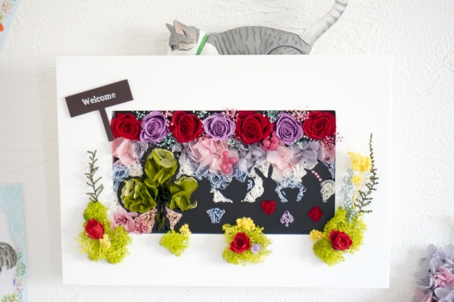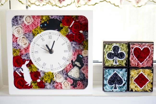 店内にはアリスの世界観を表現した、さまざまなプリザーブドフラワーアレンジメントも飾られています(アレンジメントはすべてご購入も可能です)。