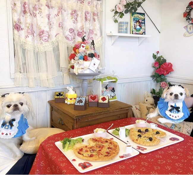 「不思議の国のアリス」の世界観を表現したカフェの店内には、連れてきたペットと一緒に写真に撮りたくなるフォトスポットが多数用意されています。