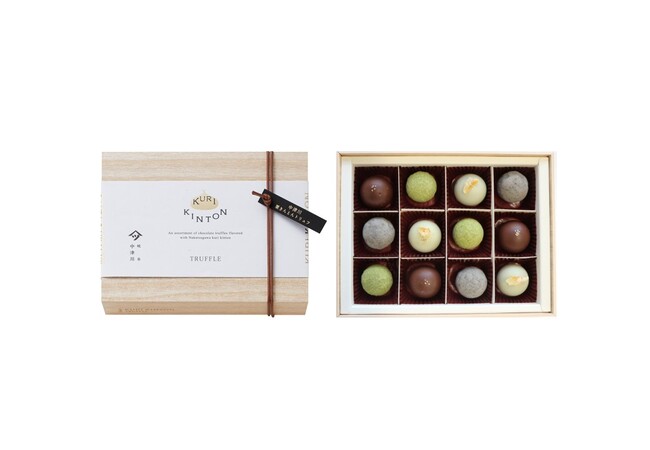 栗きんとん発祥の地として知られる岐阜県“中津川”。厳選された国産栗と砂糖のみで作る、素朴で上品な「栗きんとん」は中津川の代表的な栗菓子です。そんな、昔から愛されてきた「中津川の栗きんとん」がモロゾフのチョコレートと出会い、上品な味わいのトリュフチョコレートになりました。「中津川の栗きんとん」の栗本来の甘みと、なめらかな口どけのチョコレートの絶妙な味わいをお届けします。