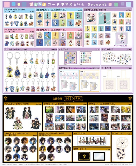 「ぷちゆるコードギアスらいふ」&「生徒会報HOPE!」のイラストを使用した新商品を多数販売