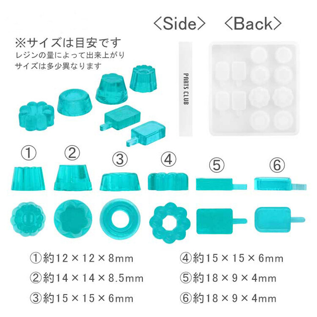 商品名:シリコンレジン型 / スイーツ6種 ゼリー・プリン・アイス(1148)