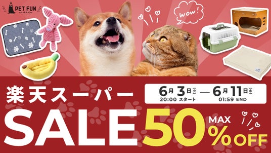 2025年6月4日に開催される楽天スーパーSALEにて、オリジナル商品の「あごのせペットベッド」および「ごろ寝クッション」を含むアイテムを最大50%オフでご提供いたします。