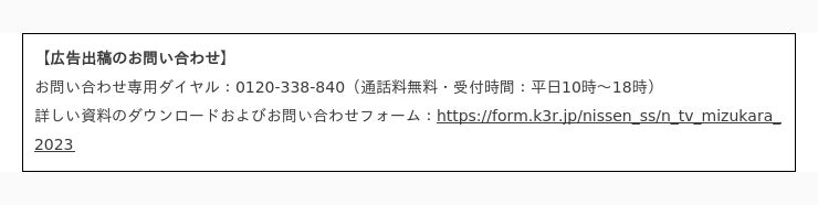 ▼詳しい企画資料のダウンロードはこちらから https://form.k3r.jp/nissen_ss/n_tv_mizukara_2023