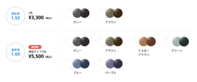 【対象商品】カラーレンズ、色の変わるレンズ(調光レンズ)、偏光レンズ、UVクリアレンズ、イエローライトカットレンズ、ミラーレンズ、遠近両用カラーレンズ