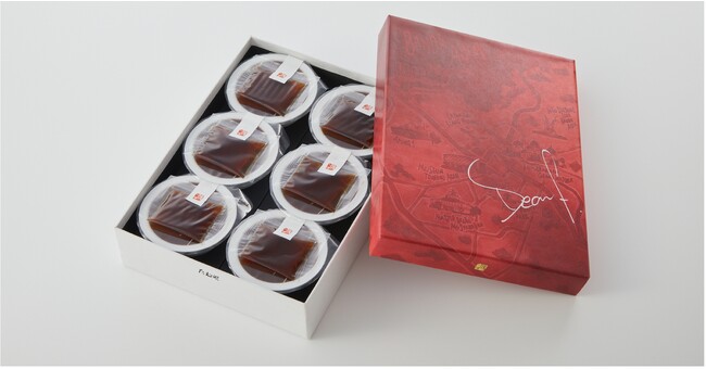 「たねや本生⽺羹」とコーヒーソースの組合せ「ディーン・フジようかん」を包む外箱には、ディーンがコーヒーに魅了されるきっかけとなったバンダ・アチェ(Banda Ache)の地図がプリントされています。