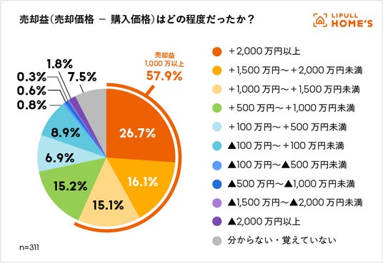 ・半数以上(57.9%)の人が売却により1,000万円以上の利益が出ている