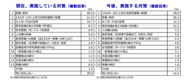 企業の半数が「節電・節約」実施、今後「価格転嫁」が最も高い