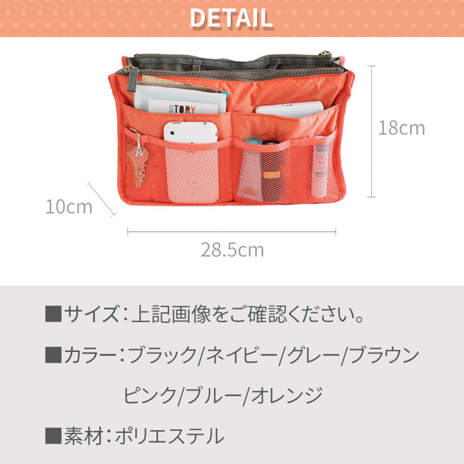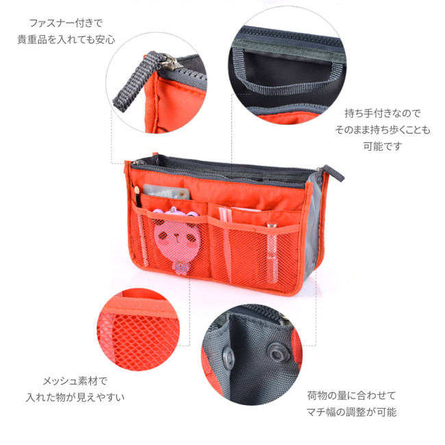 バッグインバッグ インナーバッグ トートバッグ メッシュ 旅行 便利グッズ トラベルポーチ トラベル用 収納バッグ 化粧ポーチ レディース メンズ おむつ入れ ママ マザーズバッグ 整理 ファスナー【gi-BG-006】