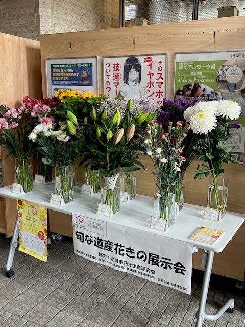 7月29日(月)から8月23日(金)の期間、北海道花き生産連合会、北海道鉢花生産組合の協力をいただき、北海道庁本庁舎1階広報スペースで旬な道産花きを展示しました。