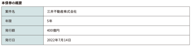 ソニー銀行株式会社(代表取締役社長:南 啓二/本社:東京都千代田区/以下 ソニー銀行)は、三井不動産株式会社(以下 三井不動産)が発行するグリーン・ボンド(以下 本債券)への投資を実施しましたのでお知らせいたします。