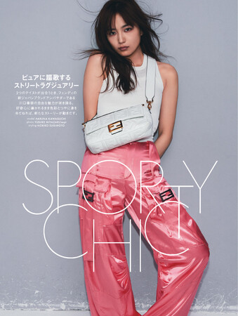 「フェンディ」のジャパンブランドアンバサダーに就任したことが先日発表になったばかりの女優・川口春奈さん。アンバサダー抜擢後、初めての撮影となった本表紙では、「フェンディ」のペールピンクのサテンドレスを身にまとい、5月号のテーマである「憧れは『センシュアル』な人」を表現しています。中面では、ドレッシーな姿の他に、ストリートとラグジュアリーをミックスした新たなスタイルにも挑戦しています。