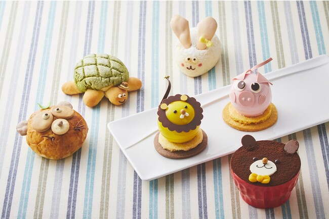また、可愛らしいフォルムで表情豊かな「アニマルスイーツ&パン」は、新作を取り揃えてご用意しました。なめらかなマスカルポーネのクリームとコーヒーの味わい豊かな“くまのティラミス”が今年も登場。チョコレートガナッシュと風味豊かなバナナのジュレをキャラメルムースで包み、艶やかなグラサージュで仕上げた“ライオンのキャラメルムース”と、甘さ控えめで優しい味わいのバニラのババロアと甘酸っぱいイチゴの相性が抜群な“ブタのストロベリームース”が初登場します。